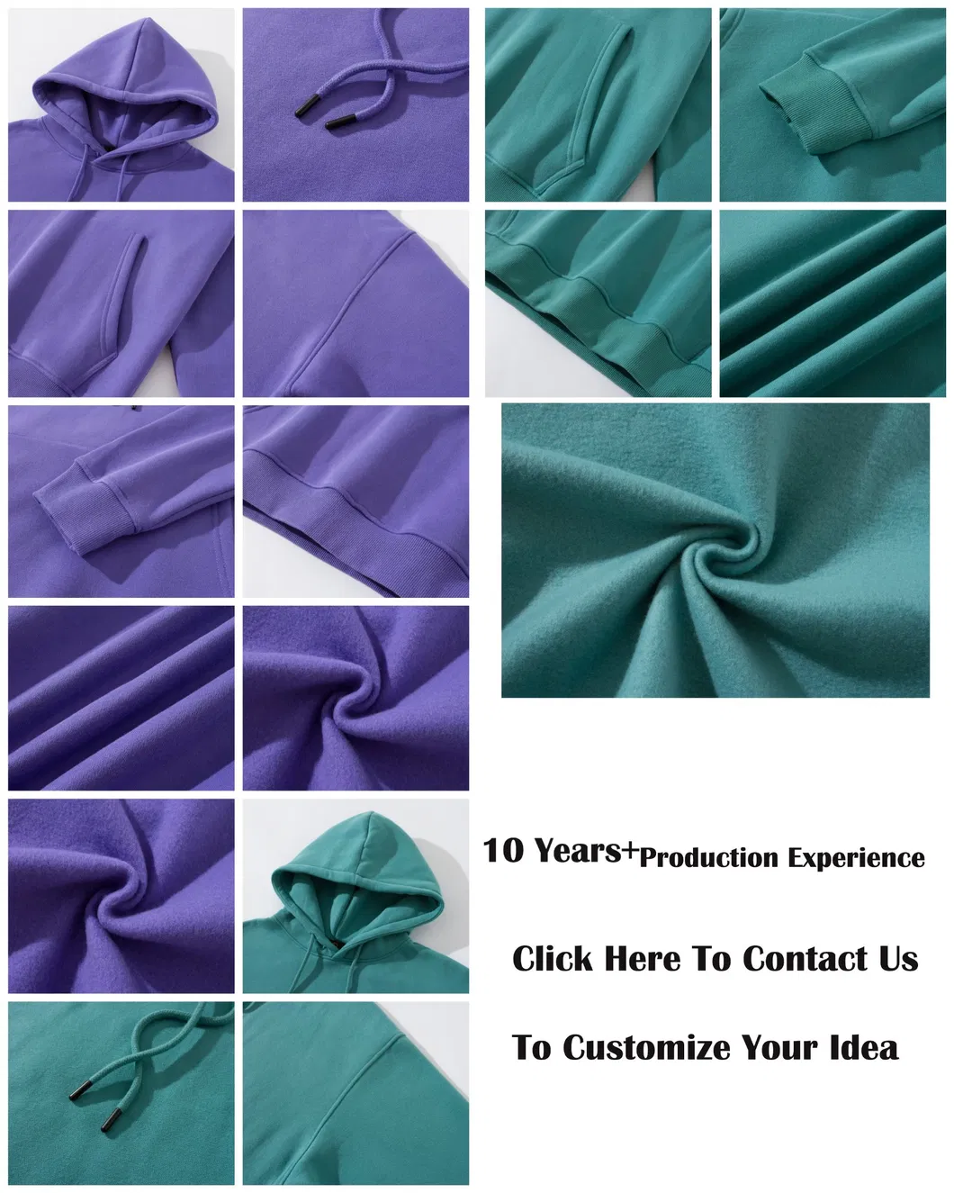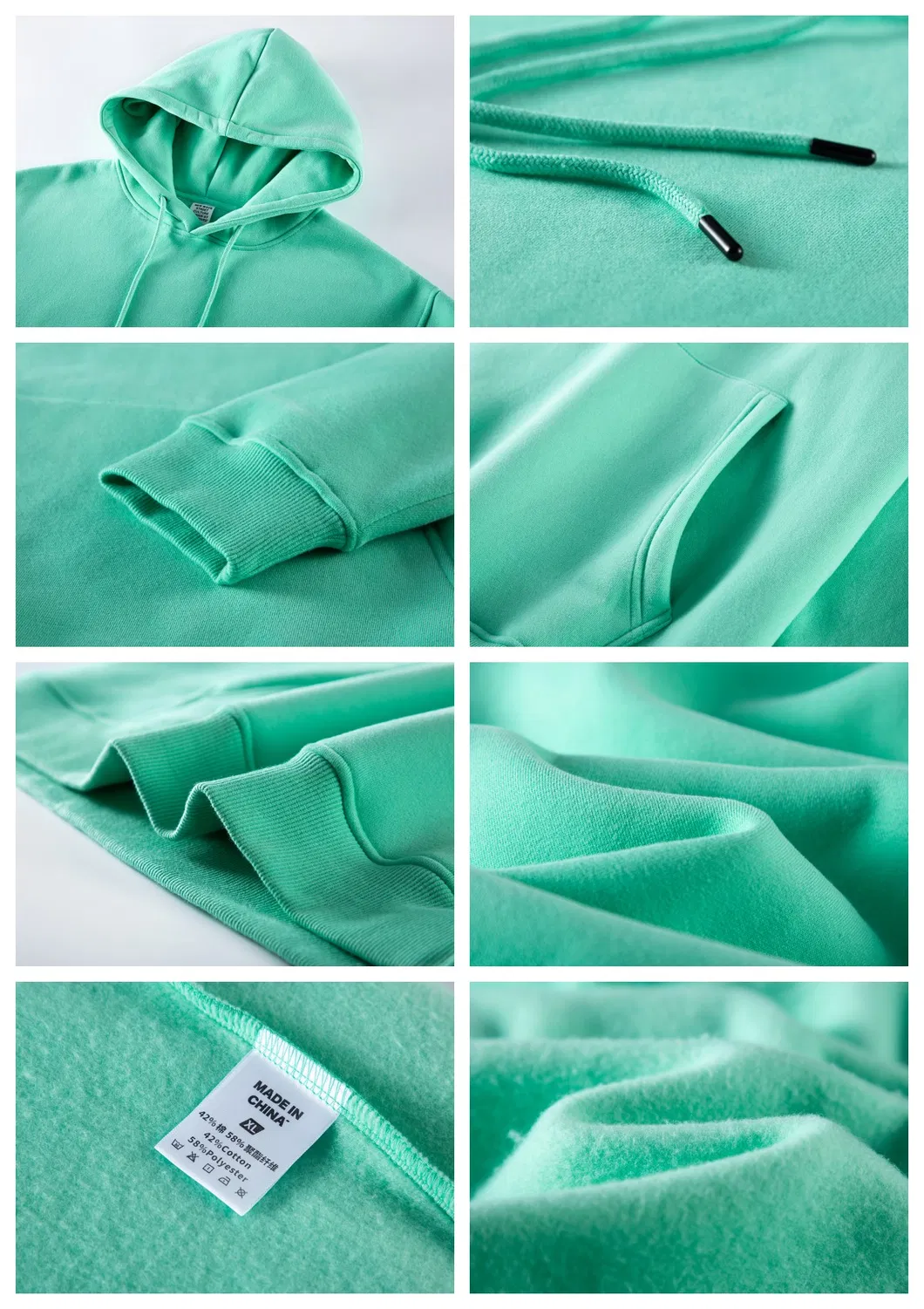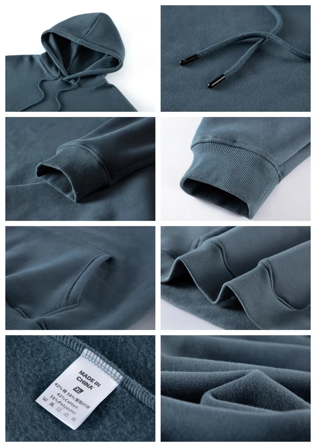 | Fabric Type | 360GSM Fleece Outside: 100% Cotton, Inside: 100% Polyester Fleece Main: 42% Cotton, 58% Polyester; Rib: 100% Cotton |